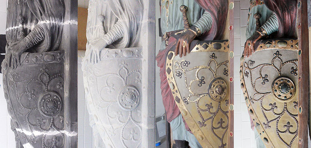 Königsstatuen von Dukki Gel (Kerma / Sudan) | Frankfurter Engel | Kerma Königsskulpturen | Grabplatte Heiliggeistkirche | Prunkhelm von Agris | Grabplatten Magdeburger Dom | Büste der Nofretete | Grabplatten Schloßkirche Wittenberg | Schale von Schwarzenbach | Seikilos-Stele | Grabmal Steiglehner | Grabplatte Wieprecht | Schild eines Kaufmanns | Repliken Völkinger Hütte | Schlachtfeld Tollensetal | Fürstinnengrab Wallerfangen | Grabplatte Otto III | Horn von Wismar | Pelzhändler | Kessel